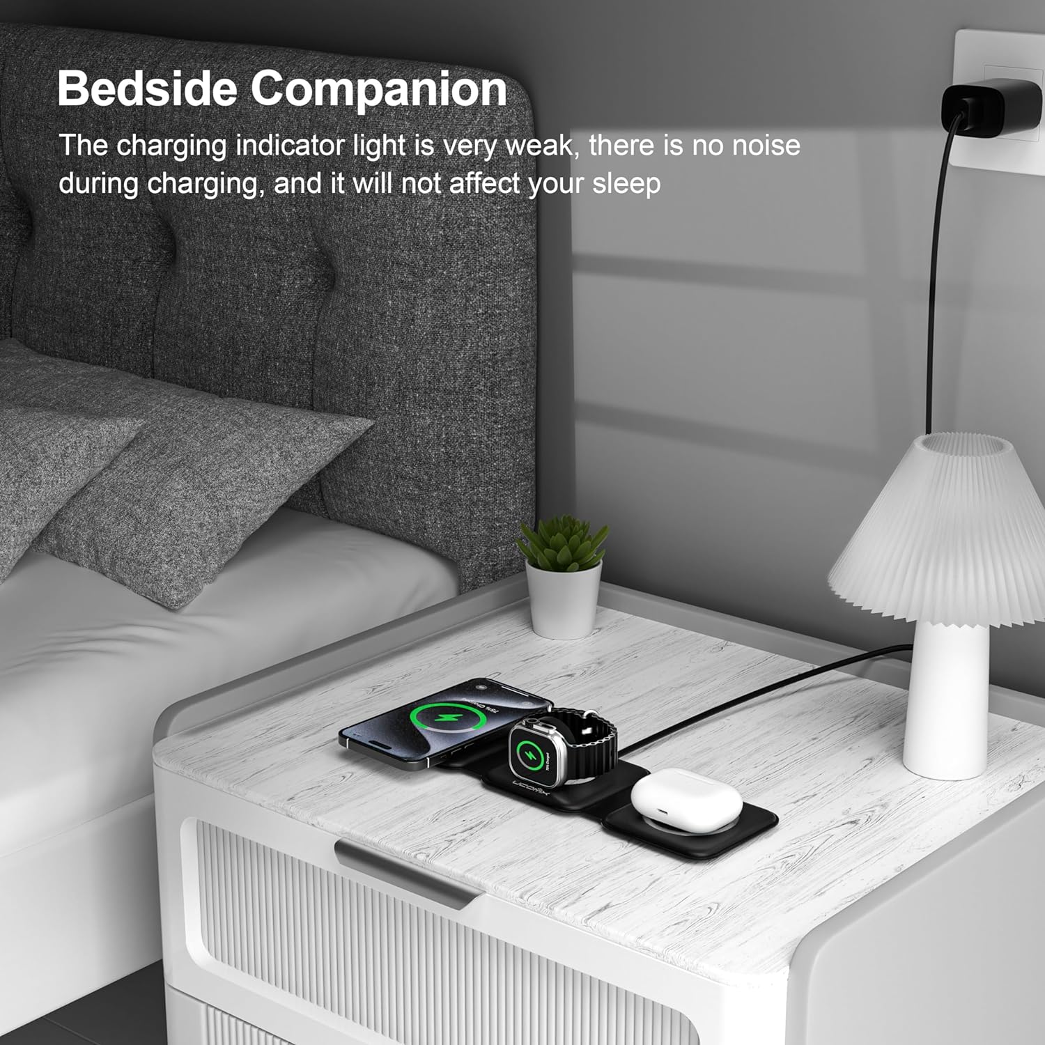 UCOMX 3 in 1 Charging Station for Mult-ple Devices,Foldable 3 in 1 Wireless Charger for Travel,Nano Wireless Charging Station for iPhone 15 14 13 12 Pro Max/Watch 9 8 7 6 5 4 3 Ultral/AirPod Pro
